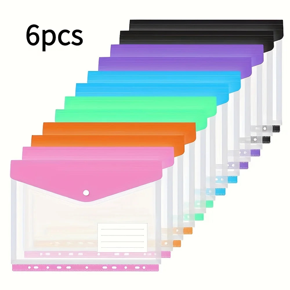 6PCS A4 Binder Pockets File Bags,Expanding Binder,Three-Dimensional File Bags with Record Labels,Suitable for Office,School,Home