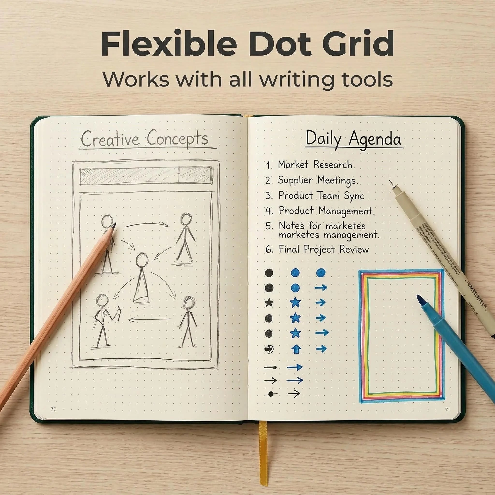 Ideal for students, professionals, writers, and creatives who want a reliable 160gsm dot grid notebook for daily organization and inspiration.