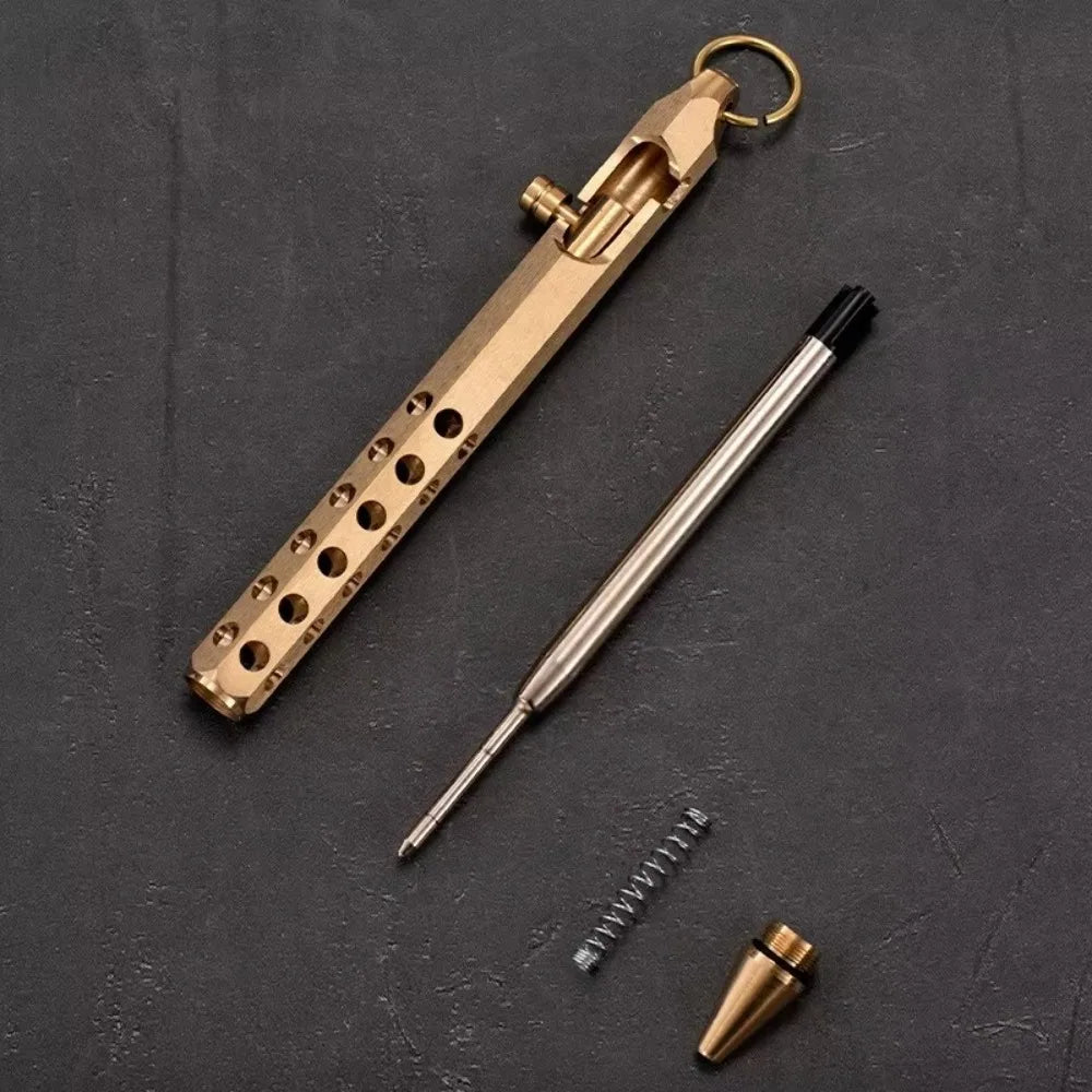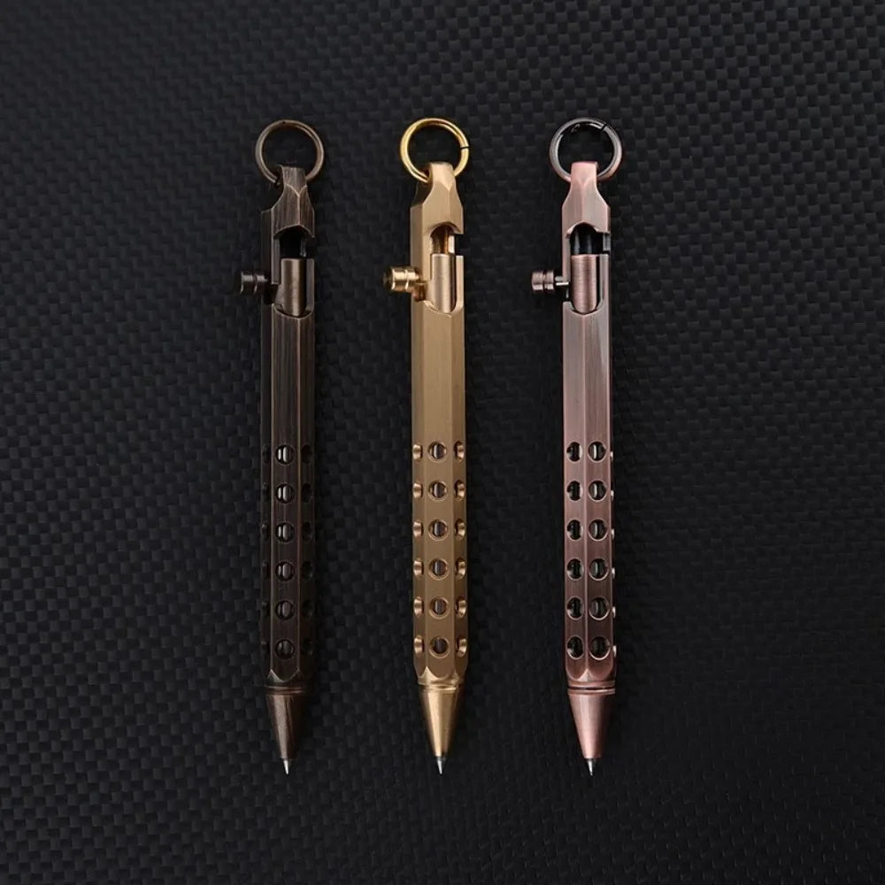 Portable Brass Signature Pen Medium Point 1.0mm Retro Ballpoint Pen Bolt Action Smooth Writing Rollerball Pen Stationery Gifts